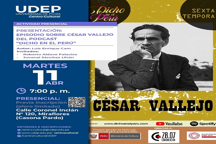 "Presentación de episodio dedicado a César Vallejo en el Centro Cultural de la Universidad de Piura (11 de abril 2023)".
